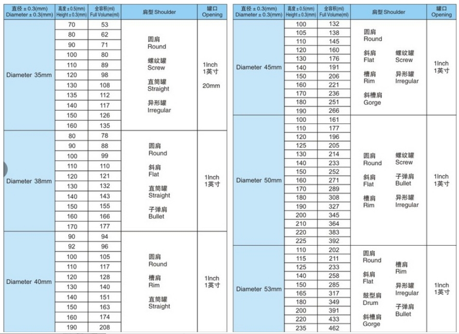 2-Aluminum tin can size: diameter 35mm, 38mm, 40mm, 45mm, 50mm, 53mm,59mm,66mm, spray can (aluminum can height can be adjusted by your needs)
